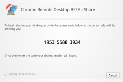 The goal of this beta release is to demonstrate the core Chrome Remoting technology and get feedback from users. This version enables users to share with or get access to another computer by providing a one-time authentication code. Access is given only to the specific person the user identifies for one time only, and the sharing session is fully secured. One potential use of this version is the remote IT helpdesk case. The helpdesk can use the Chrome Remote Desktop BETA to help another user, while conversely a user can receive help by setting up a sharing session without leaving their desk. Additional use cases such as being able to access your own computer remotely are coming soon.