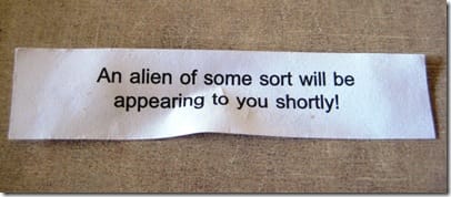 After the meal I broke open my fortune cookie. I handed the paper to a friend of mine to read since I didn't have my glasses on and for all I knew I was trying to read it upside down (turns out I was).