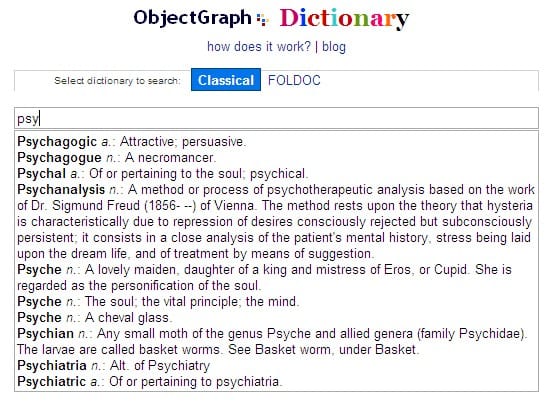 It’s pretty darn nifty. He used an older, early-1900’s classical dictionary, so some of the definitions are kinda funny to read. Also added recently (new for 2005, heh…) is the Free Online Dictionary of Computing (click FOLDOC on the Dictionary page to search that publication).