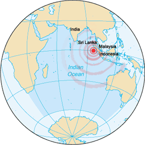Sunday, December 26, 2004 — The largest earthquake to strike the globe since 1964 has caused devastating tsunami waves that have killed thousands in south Asia. The 8.9-magnitude quake hit December 26 off the coast of Indonesia, triggering these extremely large waves that have brought massive flooding, damage and loss of life in the region.