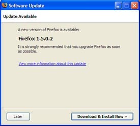 Also, of use to corporate IT people is the Firefox Community Edition package from FrontMotion that includes features to do MSI installs and leverage associated Active Directory ADM files to manage Group Policy security functionality in Windows domains. Companies using this package can apply the patched versions in an automated, simpler and reliable fashion. Larger organizations that don't use such a package have to deal with either a more complicated update process or reliance on end users to perform the updates - which is never 100% successful, even in the smallest shops. Version-wise, it's important to note that FrontMotion's MSI installers tend to lag a bit behind the Firefox official releases (when a new FireFox release is issued, the FrontMotion crew uses it to create the new MSI installers and ADM files), so keep this in mind when deciding how to deploy.