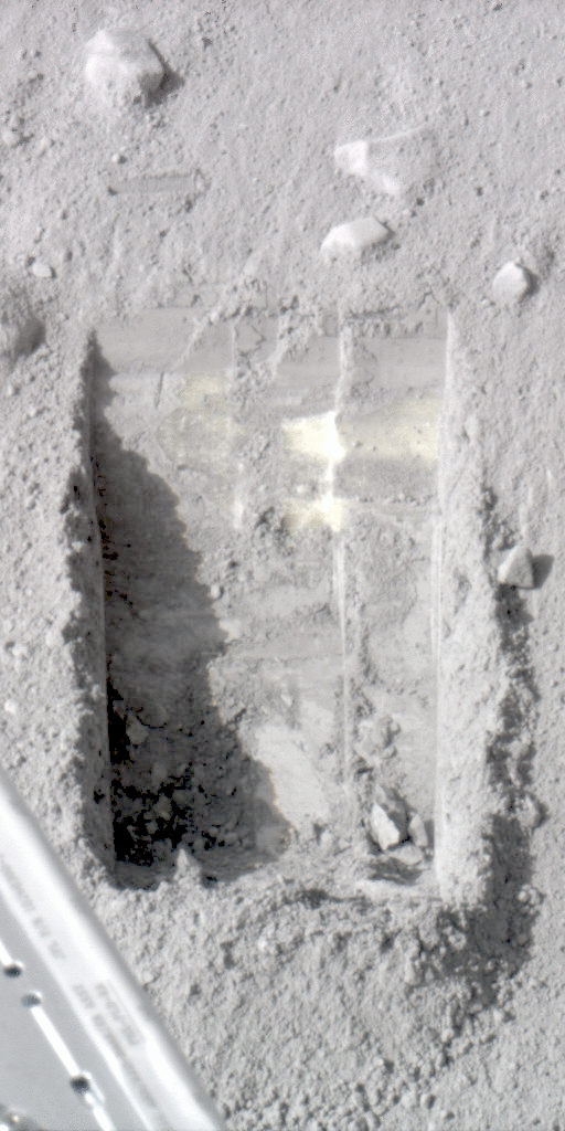 *June 19, 2008 -- Dice-size crumbs of bright material have vanished from inside a trench where they were photographed by NASA's Phoenix Mars Lander four days ago, convincing scientists that the material was frozen water that vaporized after digging exposed it. *