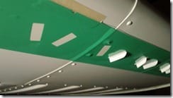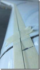 clean up any excess adhesive and tape and crud, and then move onto the next section. Applying all the VGs took us about three hours of solid work as a team. My friend Matt applied the glue to each VG, while I sprayed on the activator and then placed each VG on the plane in the gaps provided by the templates. On the wings the VGs go on top of the wing surface a few inches aft of the leading edge. On the tail, it’s different. The horizontal stabilizer VGs actually go underneath the wing, and on the vertical stabilizer they go just in front of the “rudder” surface, in the middle of the stabilizer structure. You need to be careful to make sure the ones you apply to the vertical surfaces don’t slide out of place due to gravity – a few of mine wanted to, so I had to make sure they stayed in the right spot until they cured, which takes only a couple minutes. Less is more when it comes to adhesive, we found. But too little and you’re also in bad shape, so really it’s all about the art of getting just the right amount on the base of each VG.