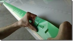 Preparation consisted first of a thorough washing of the entire aircraft to remove all the dirt, dust and bug crud, especially from the wings and tail control surfaces. Another good friend helped me with that a few days prior. On the day we started installing the kit, a lint-free cloth and some rubbing alcohol removed any final layers of crud from the areas where the VGs will be applied – The wings, stabilator (horizontal stabilizer on the tail) and the vertical stabilizer (the upward fin portion of the tail).