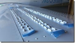 The first few VGs we applied were not pretty – I ‘ll just admit that up front. I had to scrape enough adhesive off that it took paint off the VGs, so I will be spot-painting those in the next day or two so they look proper and nice. But after applying a few, my friend and I got in the swing of things and discovered exactly how much it takes. One thing the kit doesn’t have that I think would be of huge benefit is a few practice VGs and a template and piece of aircraft sheet metal. For someone who’s never done this before, a small amount of practice could be really helpful before defacing the skin of a real airplane. But that’s just an idea, and in the end this is not rocket science.
