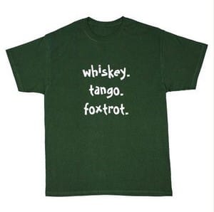 So... For your dry humored, geeky enjoyment - the Whiskey-Tango-Foxtrot shirts. Please wear appropriately. And remember the first rule of holding others accountable: Give them the ticket or give them the lecture, but never do both. Adding insult to injury is uncool. Analagize that and apply it to your own world. You'll go far. Whatever that means.
