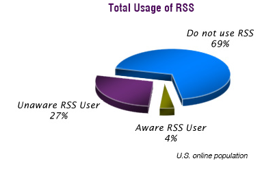 One figure that stands WAY out: Of "unaware" RSS users, 72% get their RSS through My Yahoo! and 41% through My MSN.