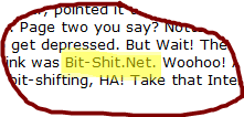 "...curious where I would rank if you searched for "bit-shift". So I loaded up my favorite web browser, pointed it towards google and off I went. Was I on the first page...Nope. Page two you say? Notta. When I loaded up page three I was beginning to get depressed. But Wait! There at the bottom of the page, second to the last link was Bit-Shit.Net. Woohoo! At least I beat out a link to an Intel article on 64 bit-shifting, HA! Take that Intel."