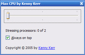 Developers who need to test their apps on machines where another process has the CPU(s) pegged can write their own stress-testing apps, or you could just go and grab a copy of Max CPU from Kenny Kerr.