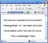 "We have an important announcement: The MessageCast LiveMessage service has been acquired by Microsoft Corporation."