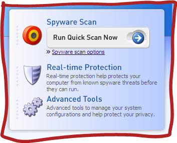 The UI is nice and clean, and I like the automatic updates (already working). It’s pretty darn IO intensive, so don’t plan to do any disk-related work while it’s performing a check. By default it schedules a scan to happen at 2am each day (you can change this) and it sets up a real-time protection service that works a lot like an anti-virus program does, watching for known spyware and prompting the user for certain types of system changes as they happen.