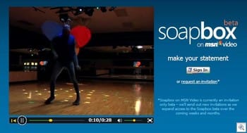 Microsoft today announced and released (in an apparently closed beta) Soapbox, their new service aimed at the YouTube crowd. Word is it will allow you to upload your videos, up to 100MB, for sharing with others. Works with Windows Media player or Flash embedded in the web page. You can get on the waiting list for a beta account via a link on the Soapbox site.