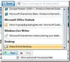 I recently set up a Windows Live Workspace beta site, and while doing that I saw a program that I had not realized was available before, called SharedView. It's a program that is currently in beta (the release number as of this writing is beta 2), and it's a simple and effective app that lets you share your desktop or applications with someone else and lets the participants grant control of their computer desktop to others in the session. It's integrated into the Office Live Workspaces for collaboration purposes, but it's usable for a variety of purposes.