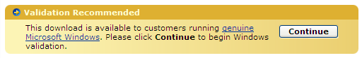 According to Microsoft, 23 percent of Windows computers in the United States are running bogus versions of Windows. The new program installs an Active-X control (users can opt out, at least at this point) that examines a system accessing certain files on Microsoft's Download Center to see if the copy of Windows that is installed on the machine is legitimate. At this time a number of Windows Media files are flagged for the check, along with several others. Files that will prompt the user to validate his or her copy of Windows are marked in the file listings with a small gold arrow on a blue circle background (see above).