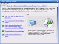 Copy and backup files, restore backup images from your hard disk (great for standard copying of the same image onto multiple flash drives, too), edit the properties of the drive, put the Flash Drive Manager binaries on the drive and make it autorun when inserted, save your wireless network settings to the flash drive for deployment to other computers, etc.