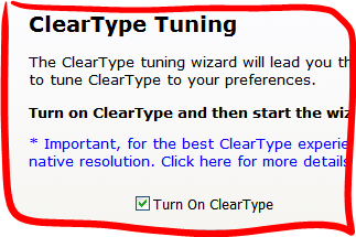 If you've never turned on ClearType, you really don't know what you're missing. It's unfortunate that most Windows XP users don't have it turned on and have not experienced the benefits.