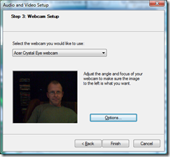 Tonight Carl Franklin asked me to help his test his webcam. We fired up Live Messenger and I was able to see and hear him just fine, but of course mine was not working. Pretty lame.