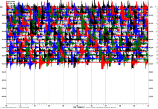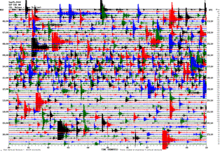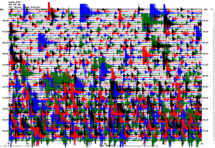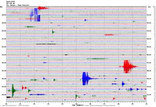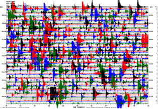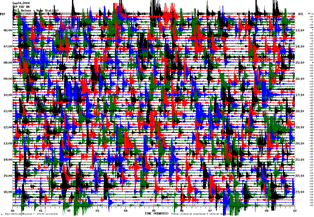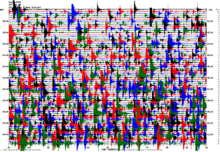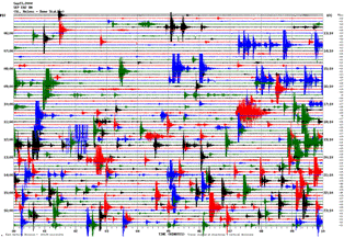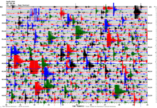 Here is the seismic-activity recording from Wednesday evening last week (the seismograph readout shows a 12-hour block from noon to midnight UTC, which is 9pm to 5am PDT), which looks pretty normal: