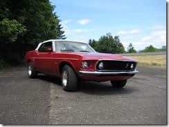 Today the trucking company showed up with my oh-so-cliché-midlife-crisis mobile, a 1969 Mustang convertible that I recently purchased from a good guy in Pennsylvania. I made a trip back east a couple weeks ago to hand over the check, transfer the title and drive the car a bit, and then painfully left it there to wait for a vehicle transport company to pick it up and deliver to Oregon.