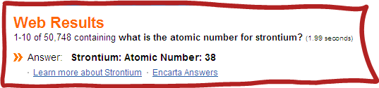 Also not surprising are the links provided to "Encarta Answers," since that appears to be the source of the MSN Search "answers" content.