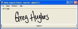 Someone I know got third place in a Power-tool/toy coding contest for Tablet PC ink apps with a cool little application he wrote in 17 minutes last fall. The Web Search Power Tool, which allows to to hand-write a search phrase and then submit it to any of four search engines, is pretty useful actually, if you use ink a lot.