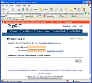 I only get, ohhhhh... maybe 50 phishes a day (seriously), so I checked my email from tonight, chose one of the several PayPal phishes that arrived this evening (most of which still had live web sites associated with them) and found the new add-in for the MSN Search Toolbar did the job quite well. It caught the page and blocked my ability to enter info into the form fields (click the image to view full size):