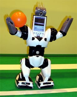 Well, some guys over in Germany that are studying robotics decided it would be fun to make the Robosapien robot autonomous - in other words, program it so it could do something on its own, using its own "senses," if you will. They successfully hacked their little robot with a Pocket PC, Microsoft Embedded C++, an IR remote control program for the Pocket PC, and a CF-card camera. Now it will "watch" for an orange pole, and if it "sees" it in its field of view, it will run toward the pole. Pretty darn cool.