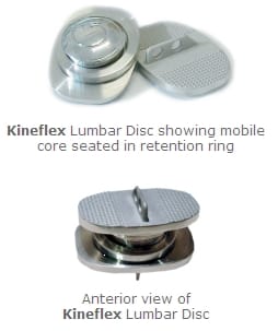 In early 2006, after years of progressively worsening chronic pain due to a damaged lower back, I had surgery to remove the lumbar disc at the L5/S1 level of my lower spine. The failed disc was replaced with a new device – a three-piece metal joint called the Kineflex Lumbar Disc – which was under FDA study as an alternative to fusing the two bones together.