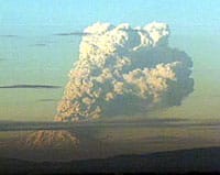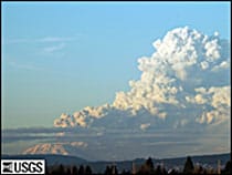 I was driving home from work today, crossed over Cornelius Pass Road and onto Highway 30. As I drove down the road I caught a glimpse of Mt. St. Helens, with what looked to be a standard-fare steam plume, typical of what one sees popping over the crater these days, coming out of it. The mountain dropped out of view behind some trees as I drove, and when I rounded a corner and saw it again a few minutes later, I noticed the plume was growing. Within a couple of minutes the plume was thousands of feet in the air. Huge. Pretty amazing really.