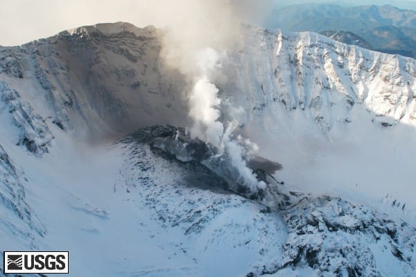 From the USGS: “Seismicity remains at a low level compared to that observed early in this unrest. The current seismicity is consistent with a continuing, slow rise of magma driving uplift of the crater floor and feeding a surface extrusion of lava. The overall low rates of seismicity and gas emission suggest that the lava reaching the surface is gas poor, thereby reducing the probability of highly explosive eruptions in the near term.”