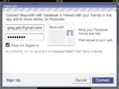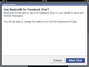 It uses Facebook Connect to log into the Facebook chat system. I provided my credentials on the iPad, set the appropriate permissions, and was quickly logged in: