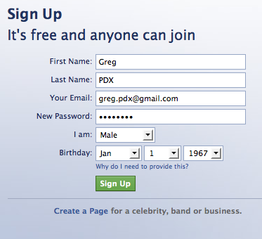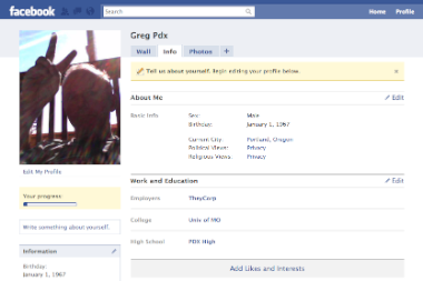 And so in a few minutes I had a new Facebook account and profile:
