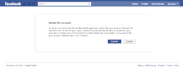 I then signed out of chat and returned to the browser on my notebook, where I visited the hard-to-find Facebook account deletion page at