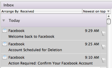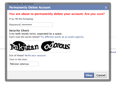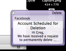 There's been a bit of a stink recently around whether or not Facebook's account deletion process works the way they say it does. The number of people pontificating in the tech blogger fishbowl has been rather amazing, but I have yet to see someone actually take the time to create, delete and reactivate an account, log on via a third party tool after an account was deleted, see what happens, etc.