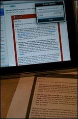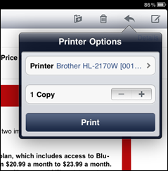 So, I’m now printing from my iPad, via my MacBook Air on the WLAN, to my office laser printer. Pretty slick, and a nice feature to have. No more emailing links and copy/paste content to one of my other computers in order to print things I find or need from the iPad.