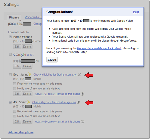 For discussion purposes to try simplify things, I’m going to refer to this integrated-Google-Voice-Sprint-Account customer experience as “Sprint Integration” for the remainder of this post.